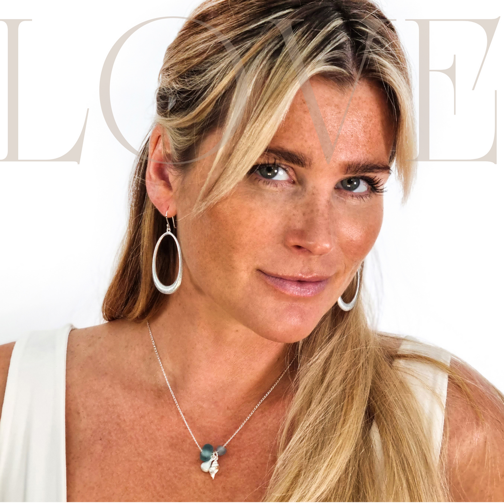 Recycled glass beads from Africa together with our LOVEbomb teardrop charm and sterling silver conche shell on a sterling silver chain. Once a bomb, now a unique and beautiful piece of jewellery.