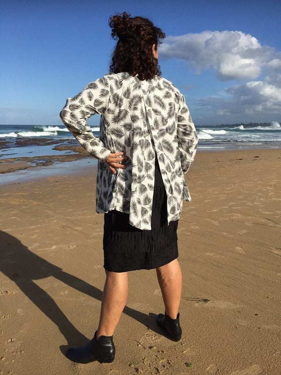 We created this super stretchy double layered black skirt to be worn with almost anything, and to be dressed up or down! Designed to pull on quick and not need ironing, the slitted fabric adds texture & interest. Fully lined!